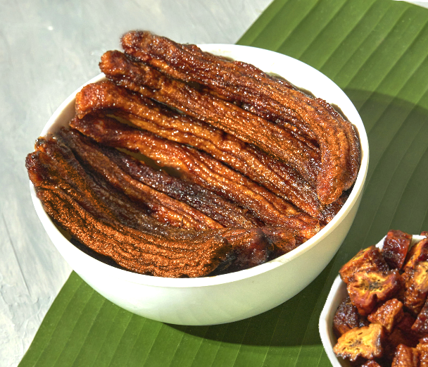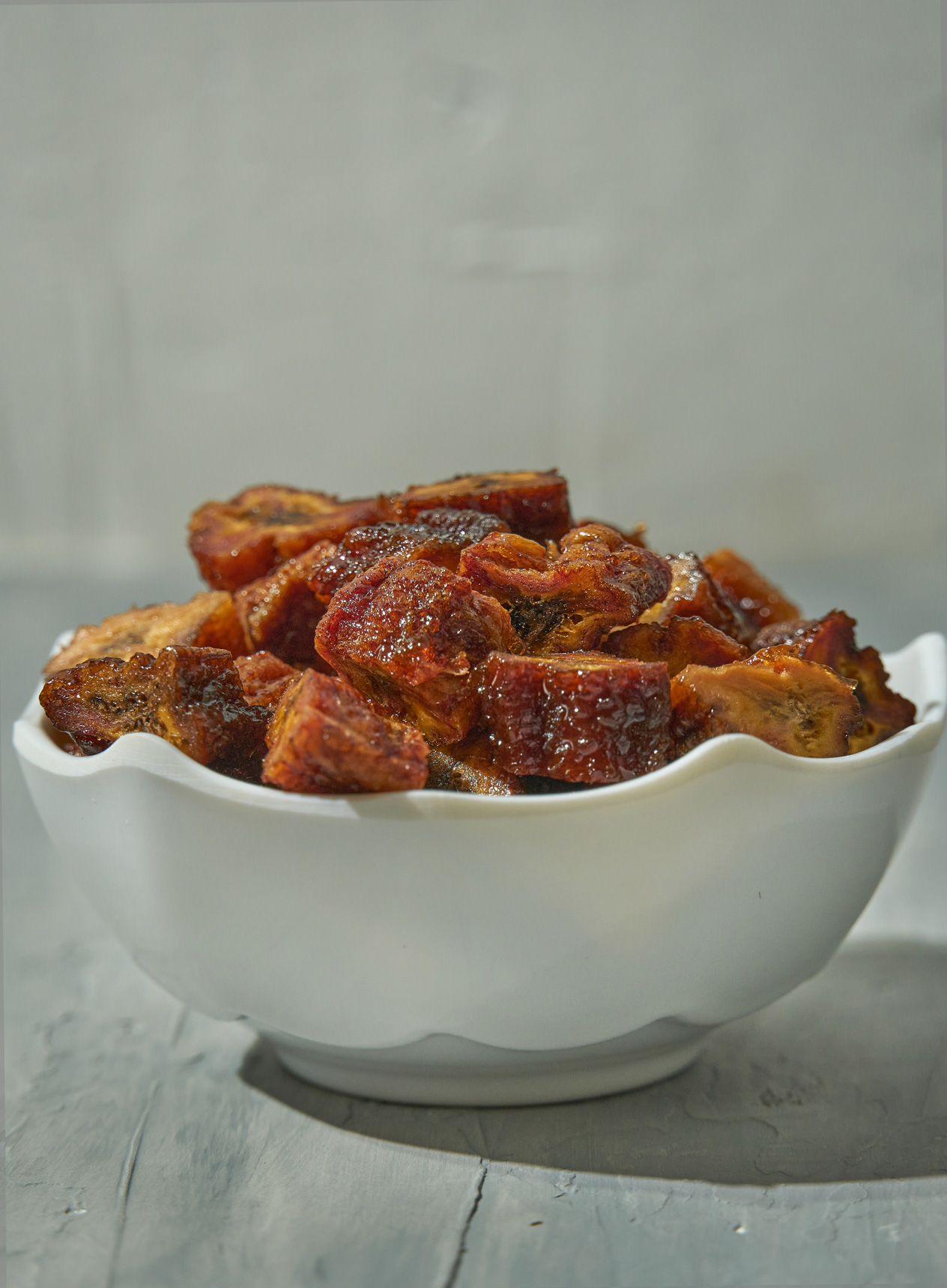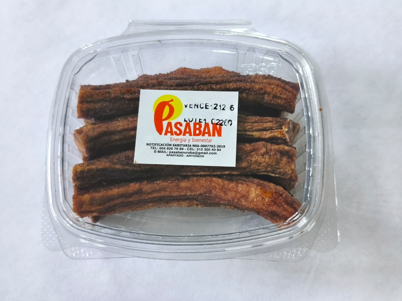 Banano natural sometido a un proceso de deshidrataci贸n que resalta los nutrientes del banano proporcionando una conservaci贸n del producto y comodidad para consumir este snack saludable en cualquier momento.